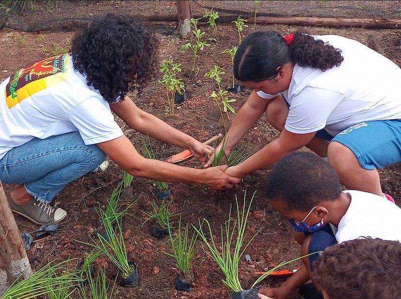 Além de biblioteca e festa literária, o grupo cria atividades práticas que promovem a conexão das crianças com o meio-ambiente, como plantio de árvores e cuidado com animais