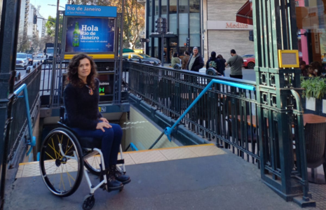 Ela mora a duas quadras da estação Río de Janeiro da linha A de metrô, mas não pode utilizá-la porque não está adaptada para usuários de cadeiras de rodas. “Não conta com elevadores nem com escadas rolantes em nenhuma de suas entradas. Por isso, tenho que pegar um ônibus, que demora muito mais”, afirma.