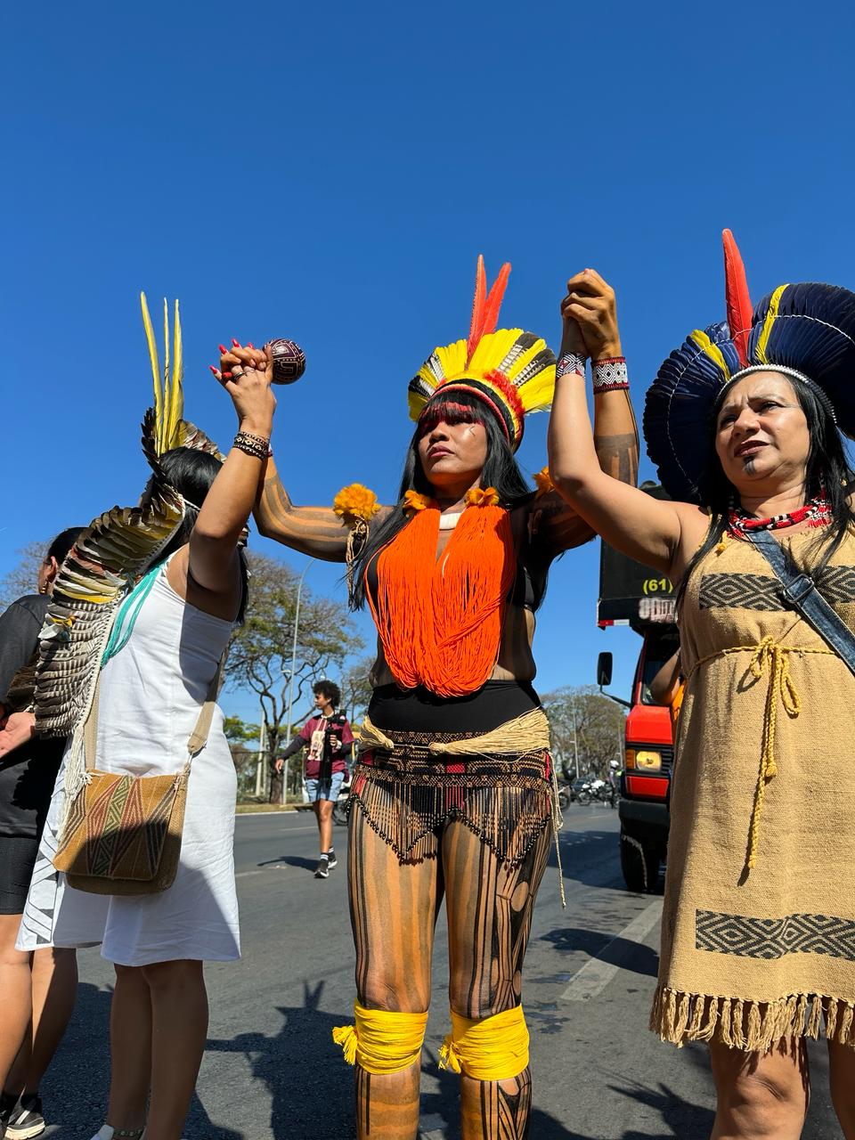 Não adianta falar de mudanças climáticas, de futuro, sem ouvir as mulheres. Nós geramos vidas e não deixamos a educação dos nossos filhos para depois. As mulheres protegem as florestas, os saberes dos povos… São as mulheres que cuidam, não apenas as indígenas, as outras também estão o tempo todo cuidando dos outros, produzindo comida, administrando o bem-estar ao seu redor. Então, também precisamos estar nos espaços onde há tomada de decisão.