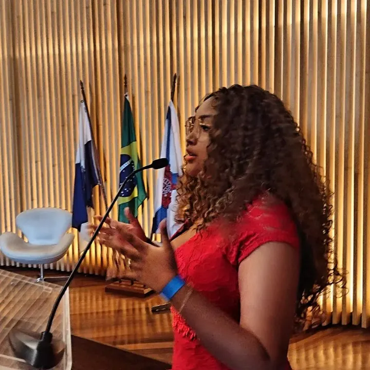 Eisla Vyncent, poetisa e cantora, moradora do bairro Parada Morabi, em Duque de Caxias, no Rio de Janeiro, aos 17 anos, é um