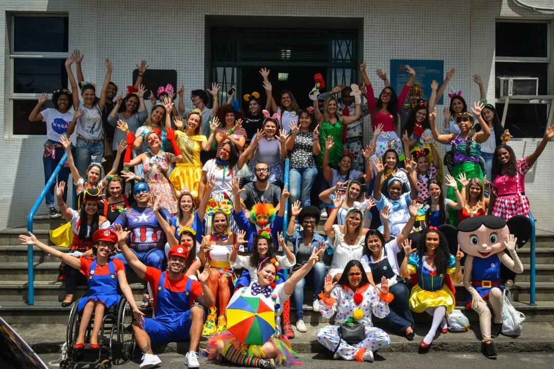 Integrantes se fantasiam para levar brinquedos e itens de higiene a hospitais do Rio de Janeiro Com início no Dia das Crianças de